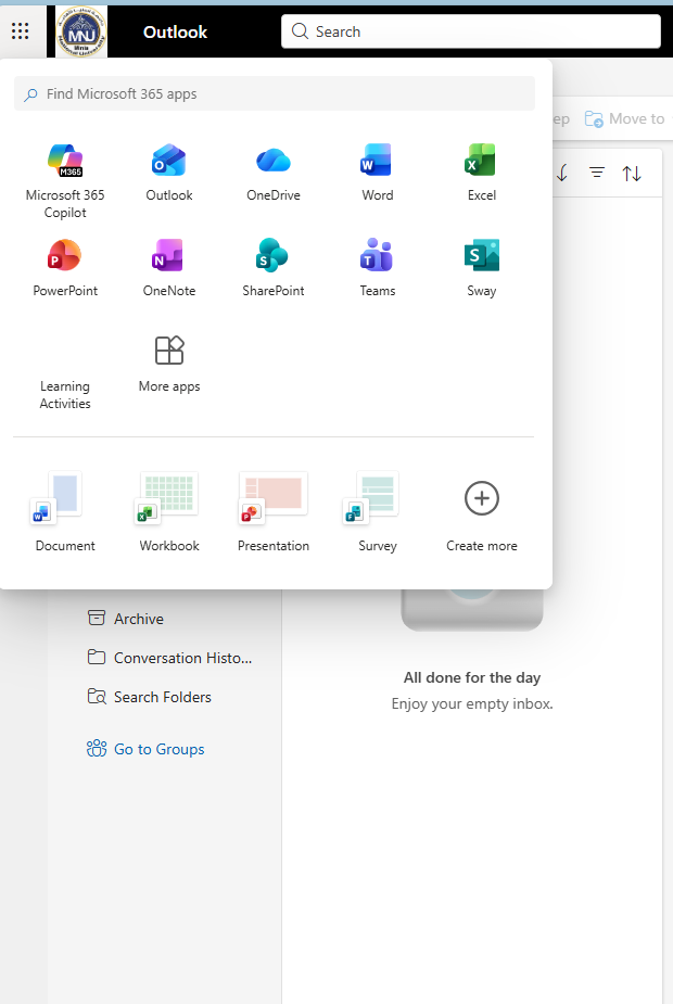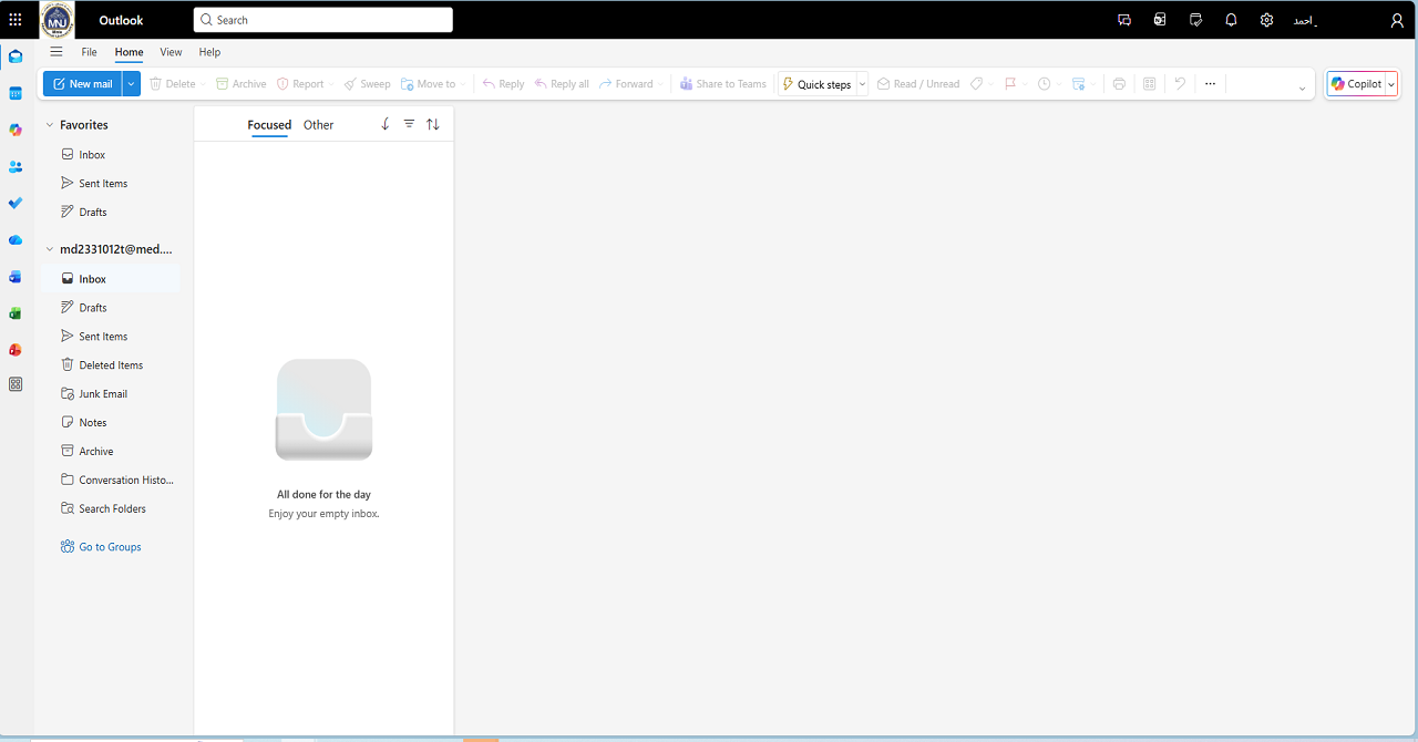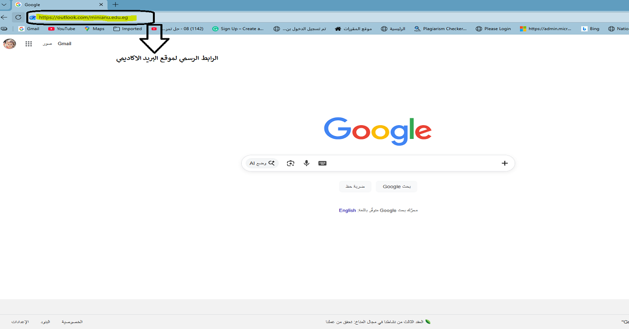 قم بكتابة الرابط التالي في المتصفح الخاص بك .https://outlook.com/minianu.edu.eg كما موضح في الصورة
